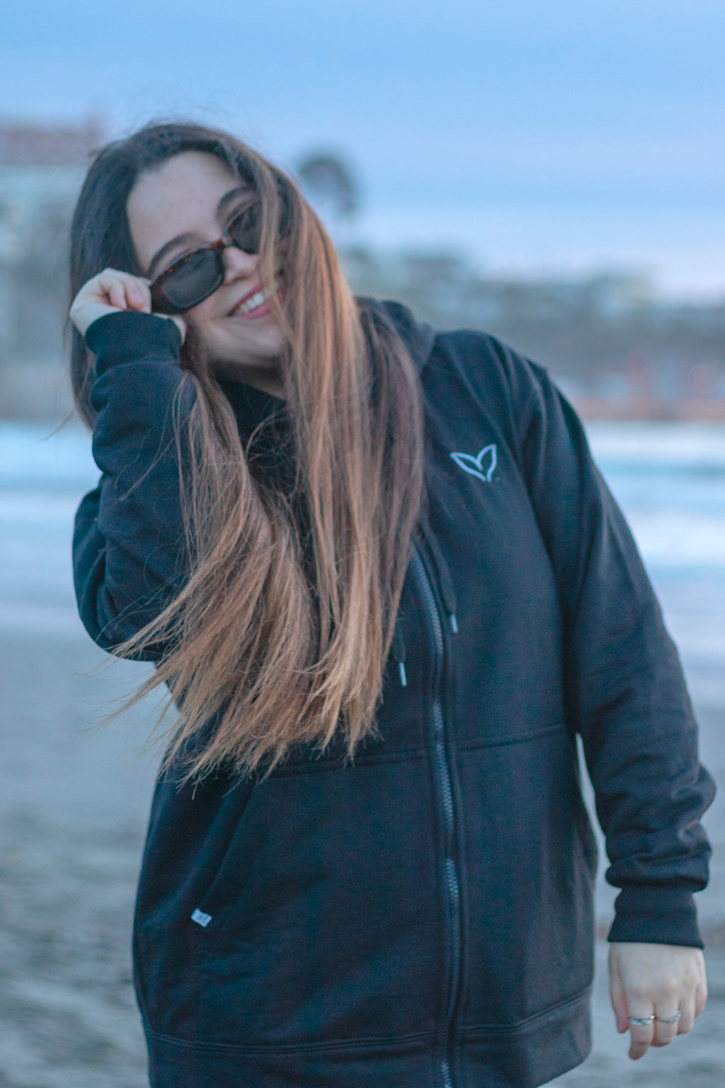Lo puedes usar durante todo el año, en esas tardes de playa, después de surfear o en tu casa. Tienen un cierre completo y un corte recto, con una capucha grande y cómoda y bolsillos para proteger tus manos del frío y guardar lo que quieras. Tienen un diseño único y playero en la espalda de una chica surfeando.